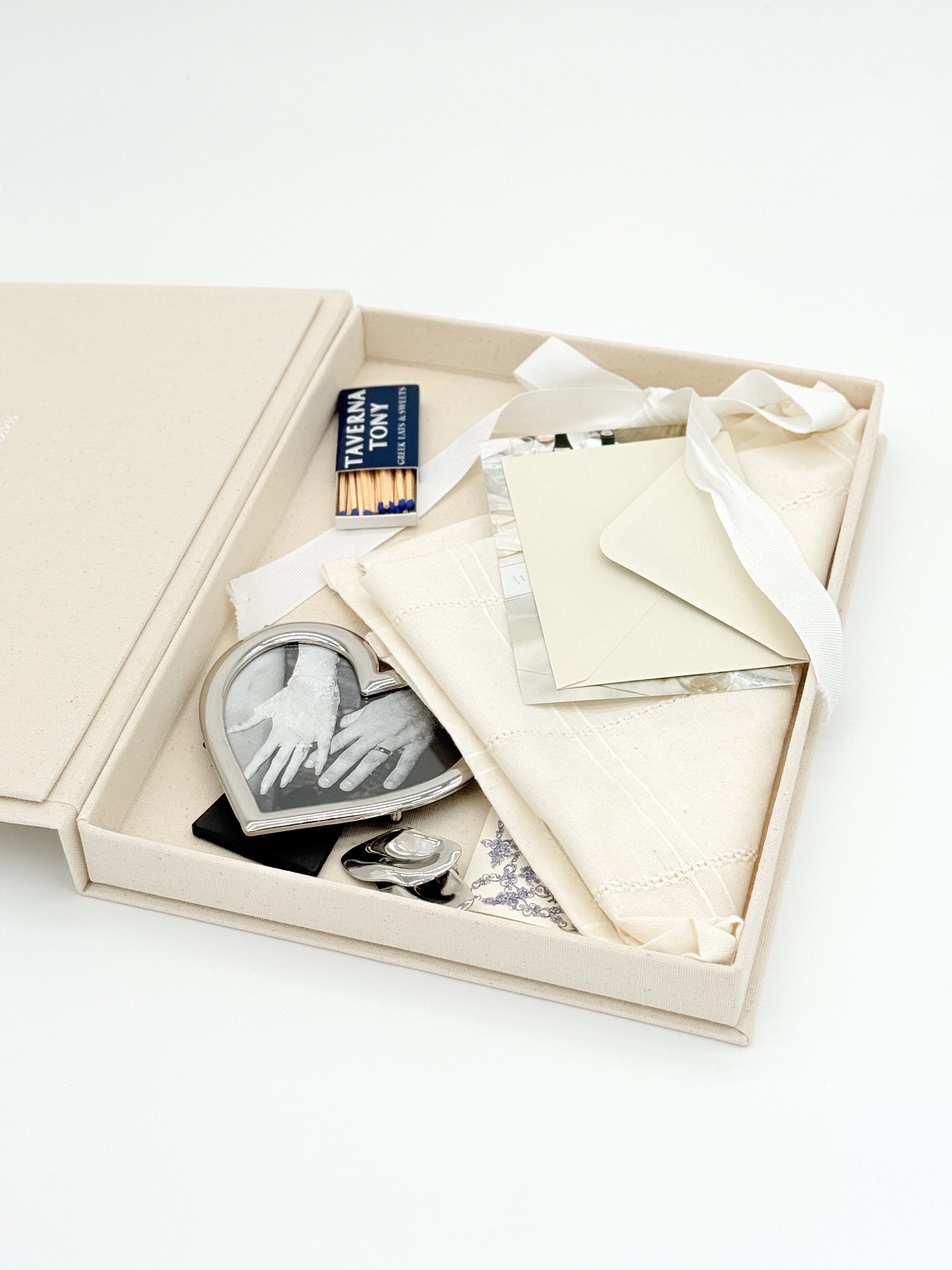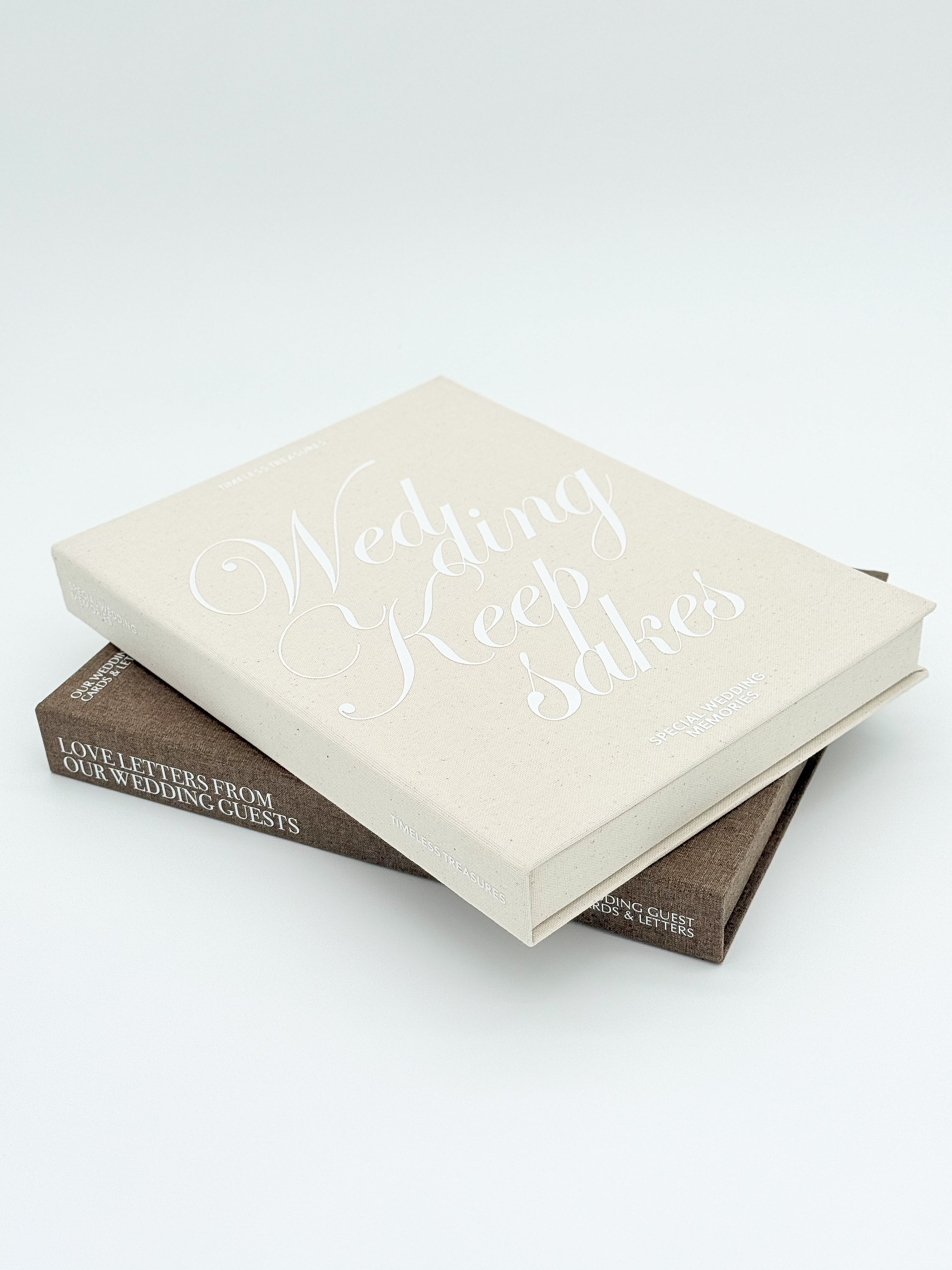 Designed to preserve your most meaningful wedding memories, this linen book box is perfect for storing small mementos—think your vows, stationery, pressed flowers, photos, or even your “something blue.” Thoughtfully crafted to resemble a beautiful coffee table book, it adds a personal, sentimental touch to your home long after the big day.