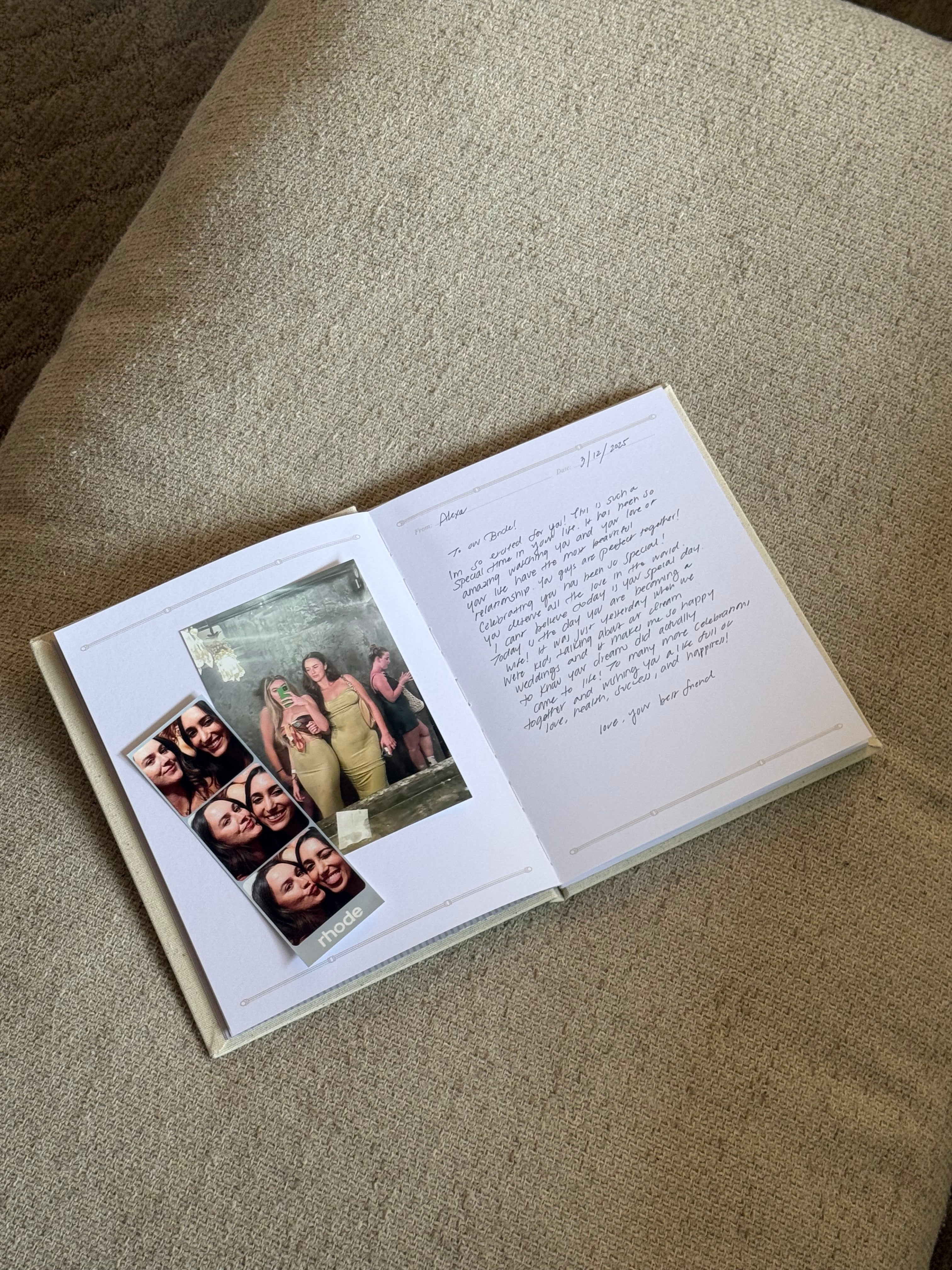 The sweetest keepsake for the bride-to-be! This linen-covered book with bold text is filled with 50 thick card stock pages, perfect for family and friends to write heartfelt letters, memories, and advice. Whether it’s for the bridal shower or a wedding day surprise, it’s a special way to fill her heart with love that she can look back on forever.